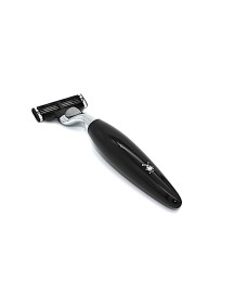 3-teiliges Rasierset mit Seifenschale, Rasierpinsel aus reinem Dachshaar, Griffe aus Pflaumenholz mit verchromten Metallakzenten sowie einem Mühle VIVO Rasierer Gillette® Mach3®