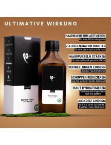 Das Golds Repair Tonic ist die ideale Lösung für Haar- und Hautprobleme. Mit seiner einzigartigen Formel hilft es bei trockener, juckender und entzündeter Haut, egal ob im Bart oder auf der Kopfhaut. Das Repair Tonic versorgt die Haut intensiv mit Feuchtigkeit, lindert Juckreiz und kräftigt die Haarwurzeln.
